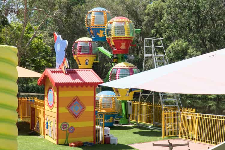 The ride is a stock standard Zamperla Mini Ferris Wheel featuring some fairly uninspiring Play School artwork.