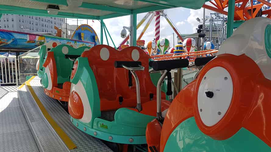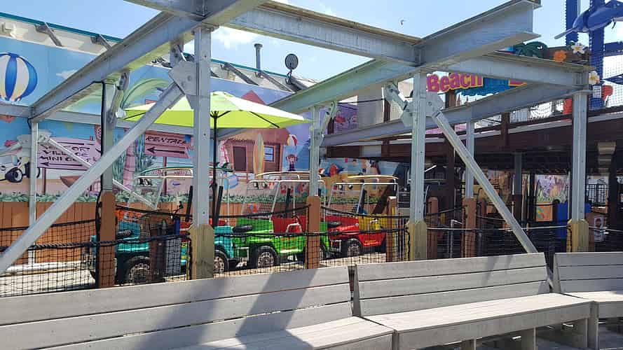 Beach Buggies is basically just a custom themed kids train ride, with beach buggies running on a steel track.