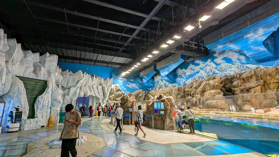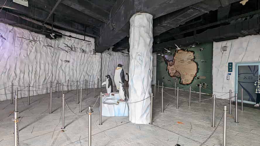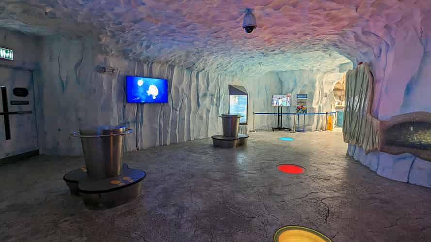The main hall contains the penguins. The exhibit is unusual from the perspective that the whole building is kept cold instead of an enclosed section behind glass that contains the penguins.