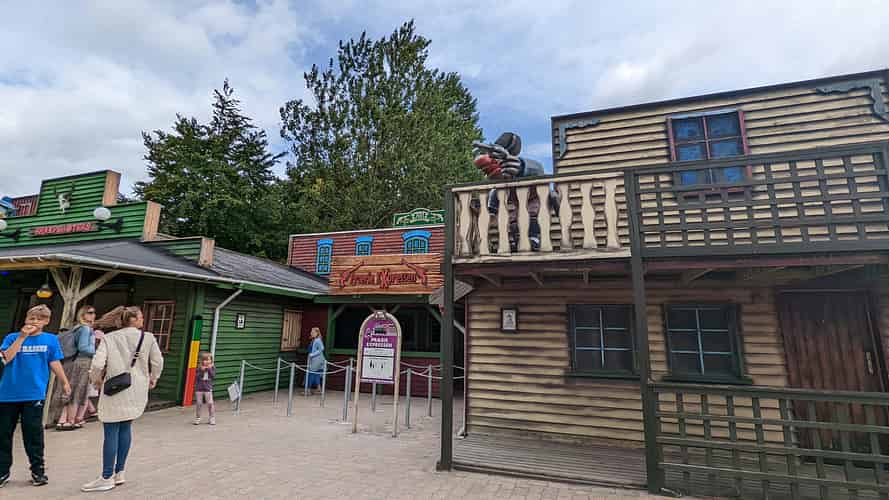 The attraction is located in a small Wild West themed land.