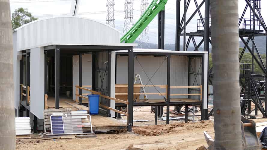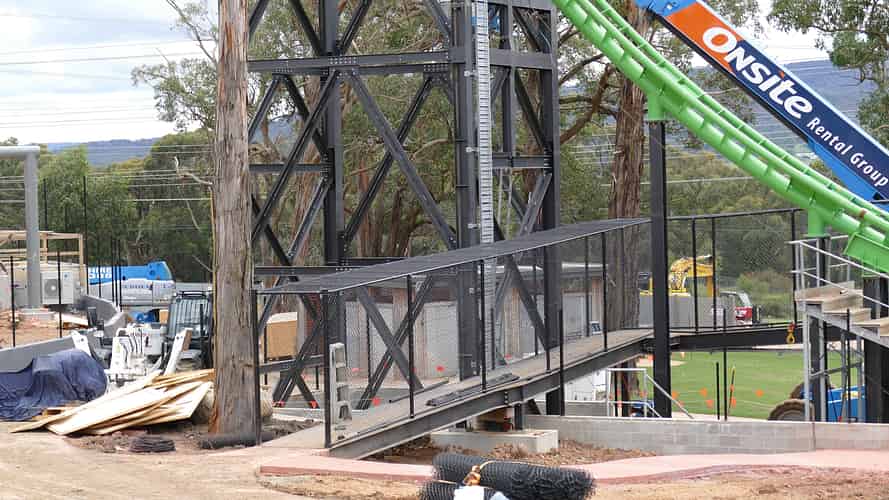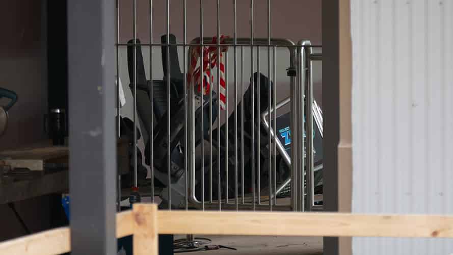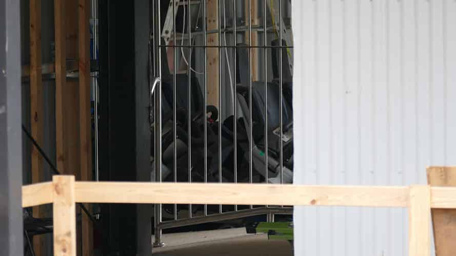 A caged exit walkway has been installed.