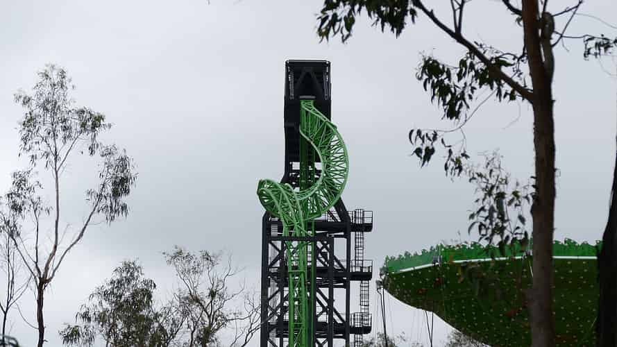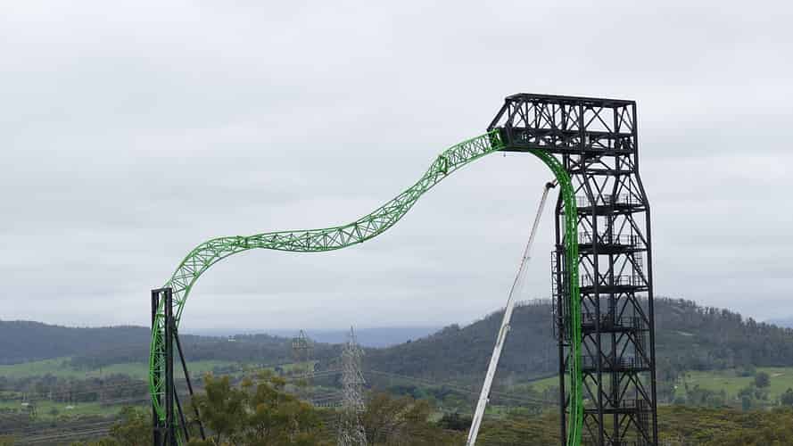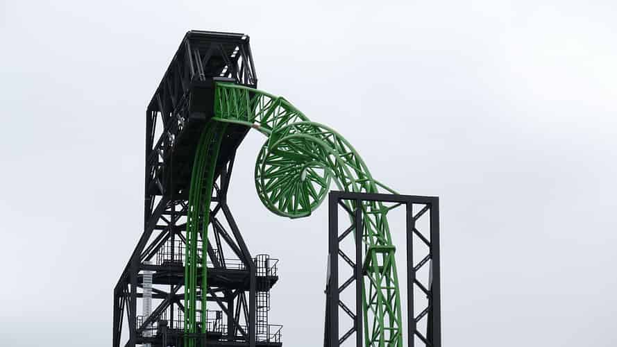 The bright green track stands out against the sky.