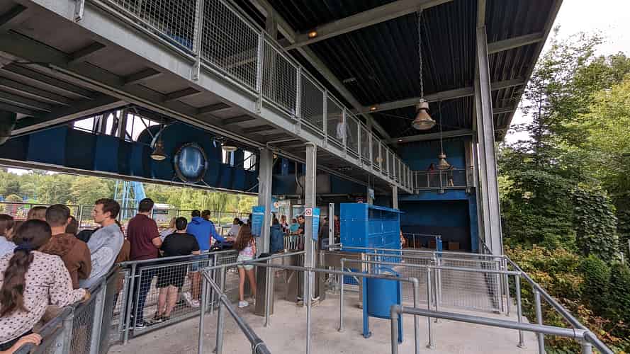 The industrial themed queue. Single rider is available.