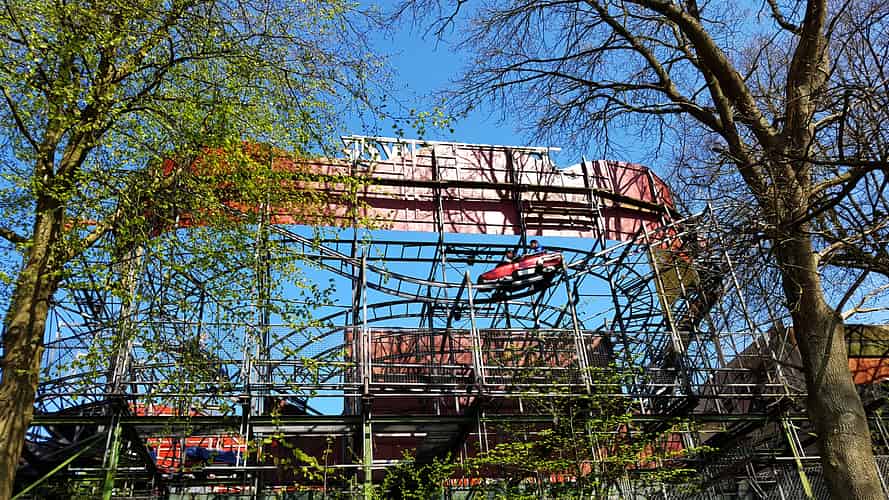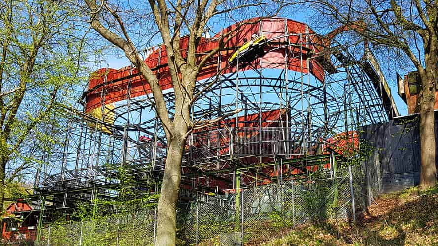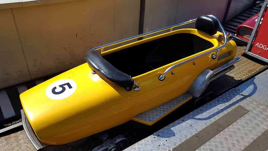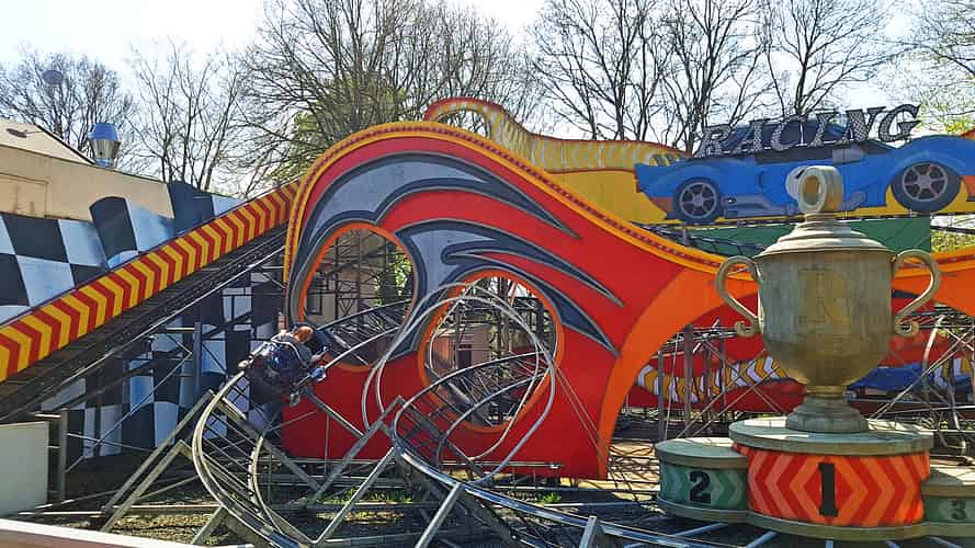 Racing is a vintage Zierer 'Flitzer' coaster.