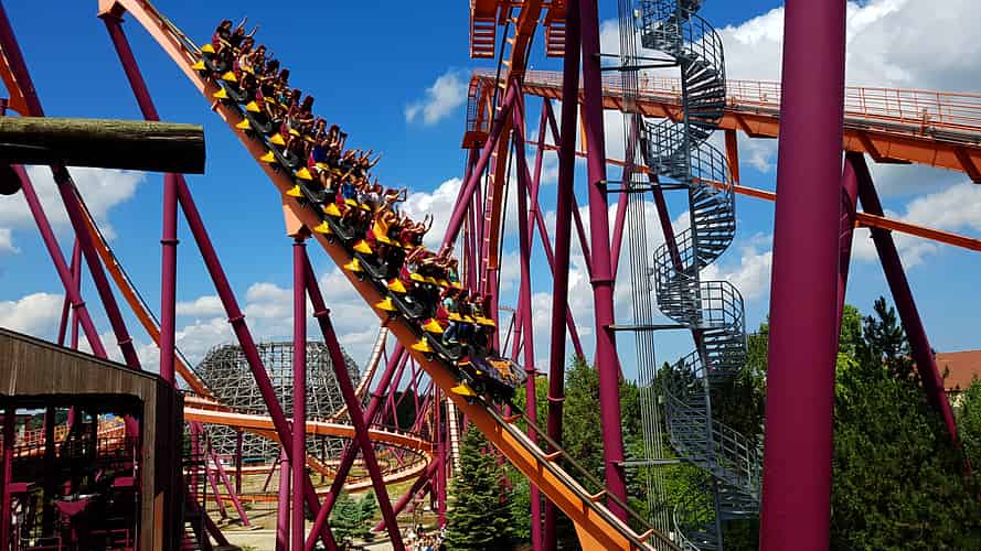 Raging Bull is a B&M hyper, combing hills with twists and turns.