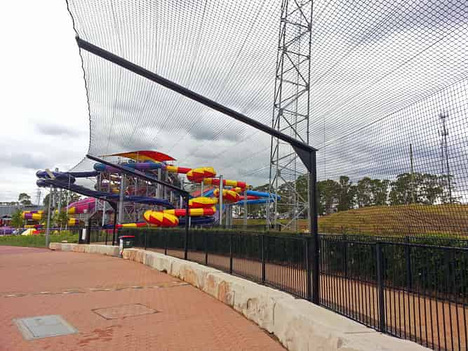 Nets over the paths protect guests from any potential falling objects from the Skycoaster.