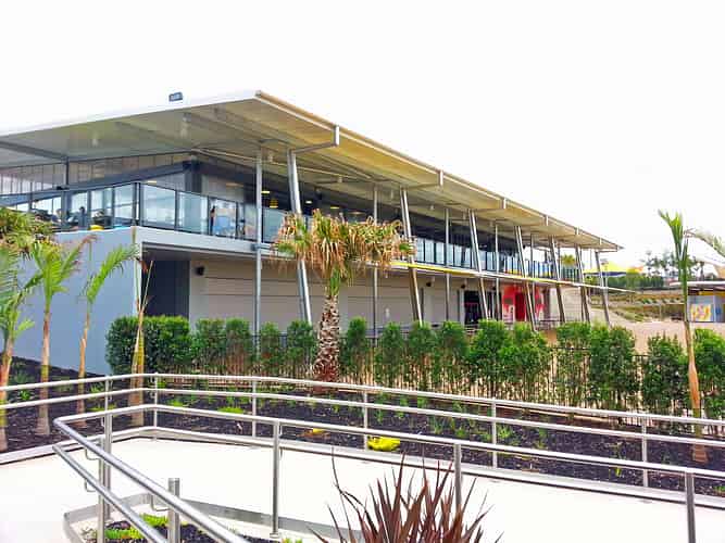 The surf club building contains the bulk of the dining and retail options in the park.