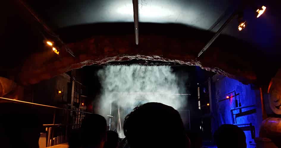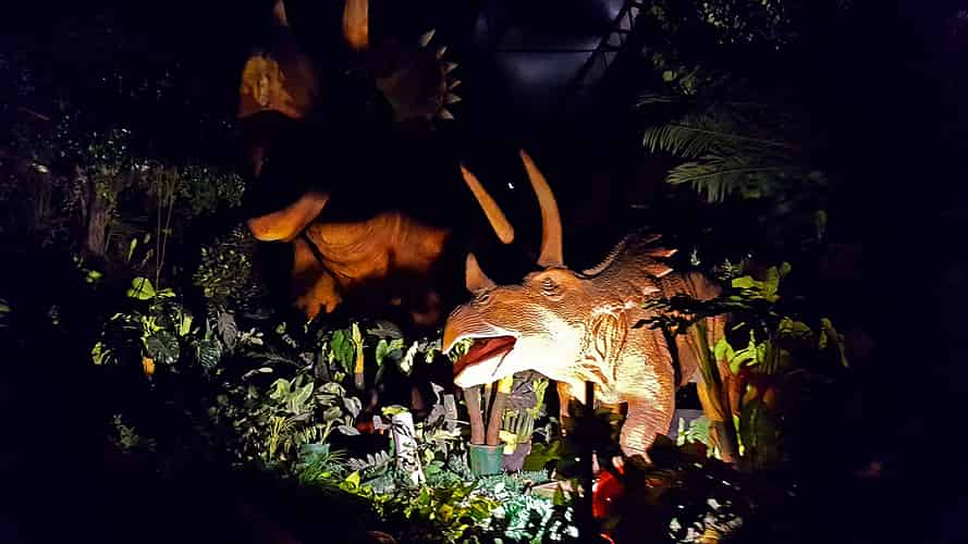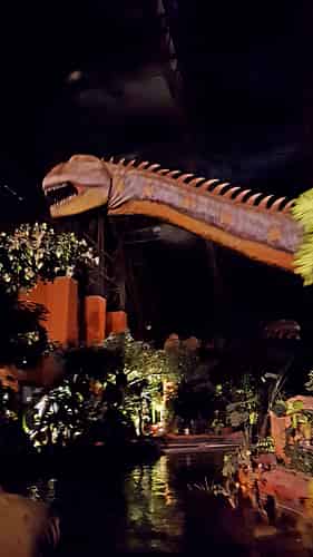 The first part of the ride is somewhat predictable, with dino animatronics in a fake jungle.