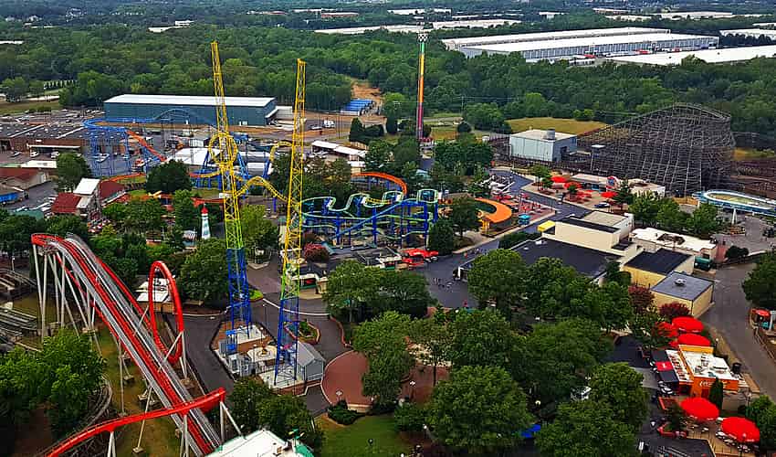 The northwestern side of the park, including Vortex, Slingshot, Ricochet, Carolina Cyclone, Drop Tower and Hurler.