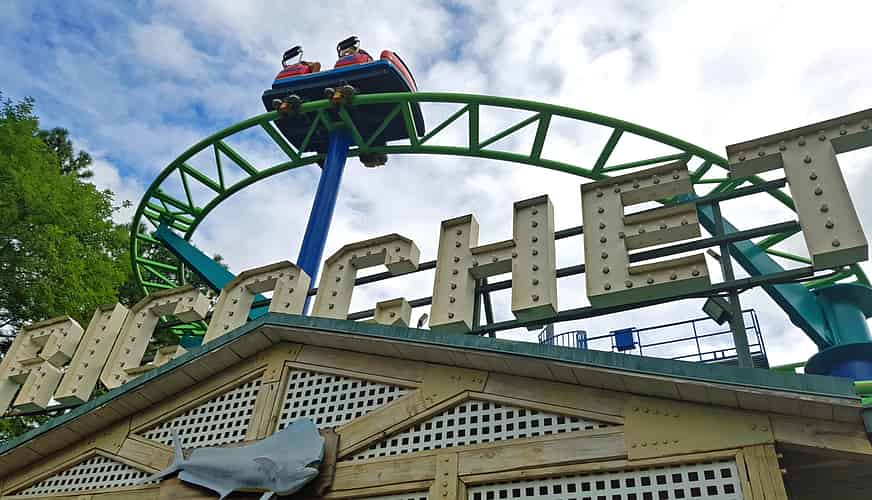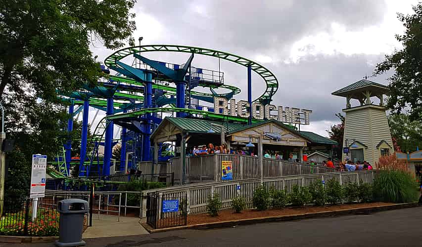 Ricochet is a standard Mack wild mouse coaster with a vague seaside boathouse themed station.
