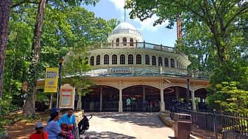 The Riverview Carousel was once located at Riverview Park in Chicago, however the name still remains relevant at Six Flags Over Georgia, with the ride sitting atop carousel hill, looking down over the Chattahoochee river.