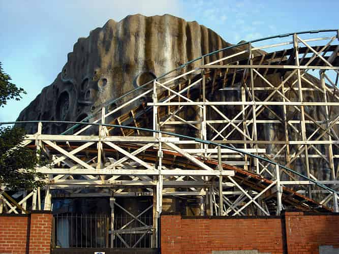 Steeplechase barely ducking under Roller Coaster.