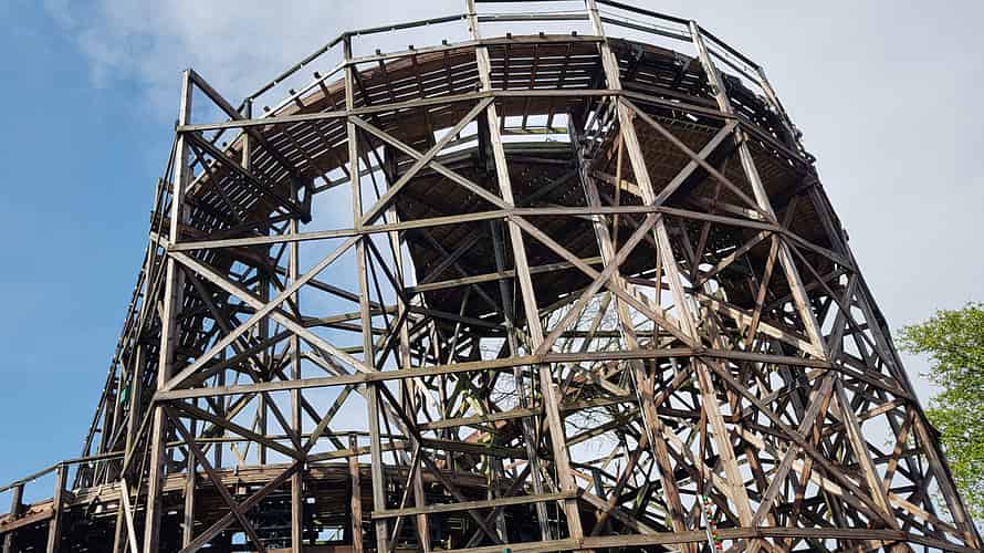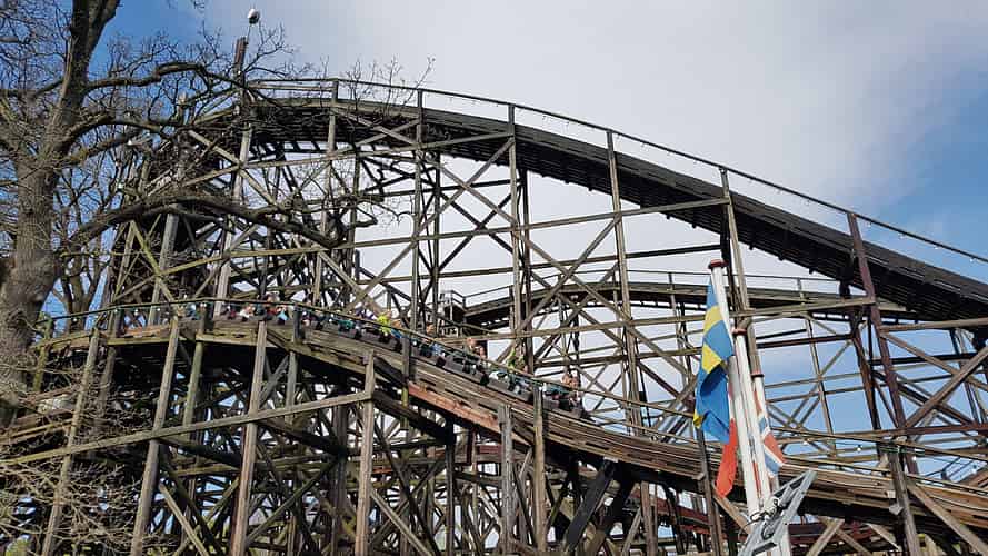 Rutschebanen is literally and figuratively the heart of Bakken, a historic wooden roller coaster.