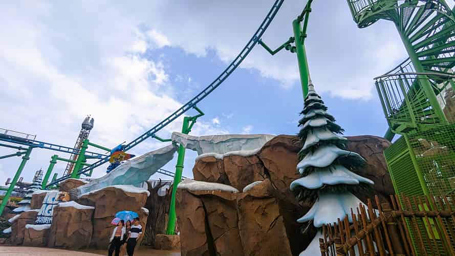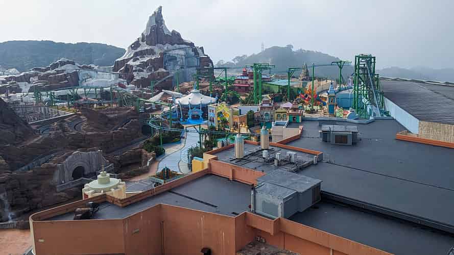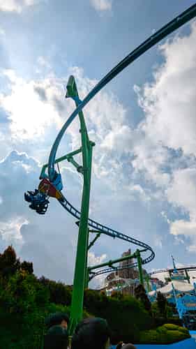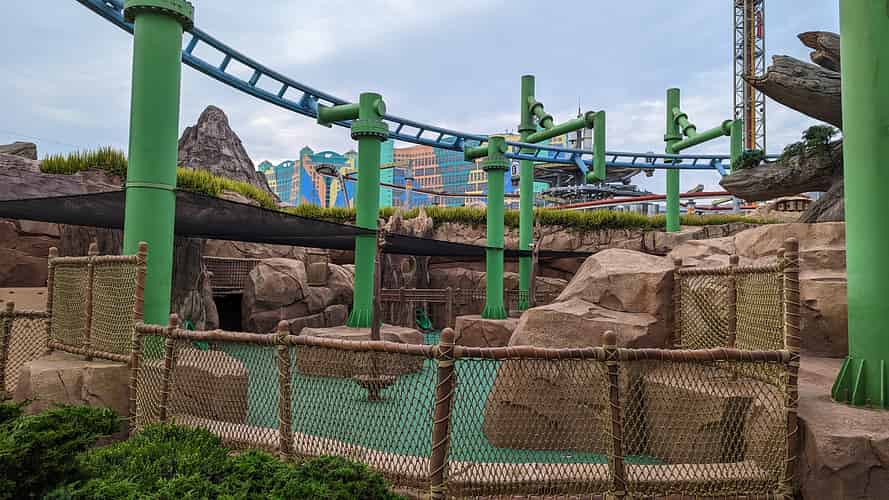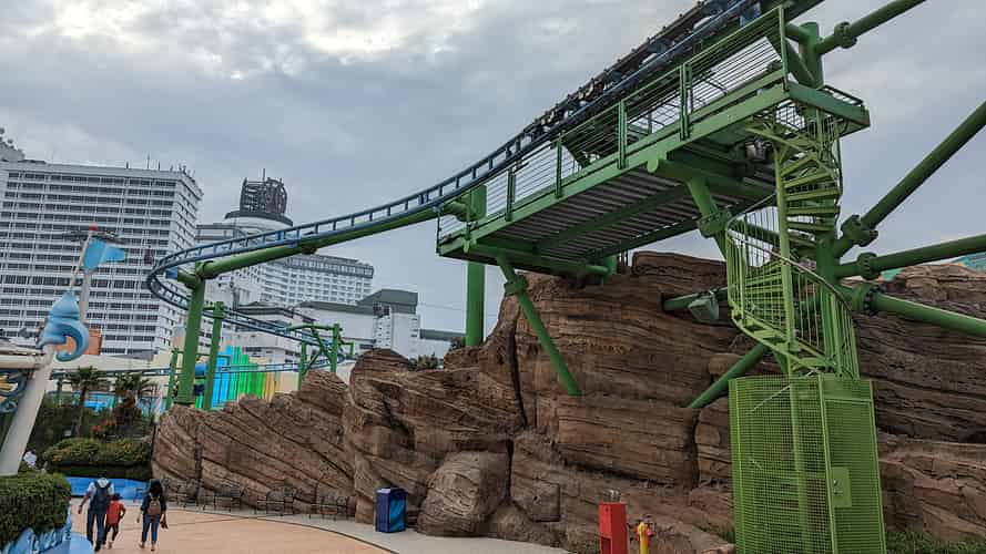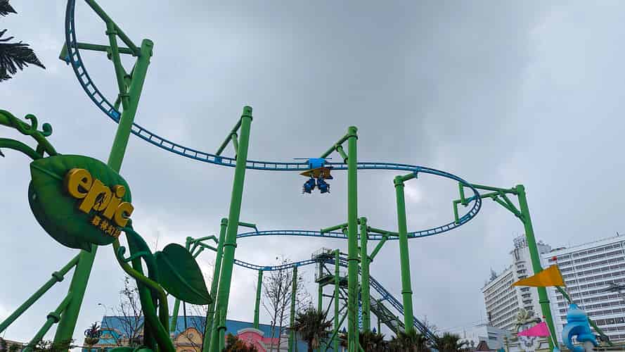 The ride largely travels above walkways, offering an interesting perspective of the park.
