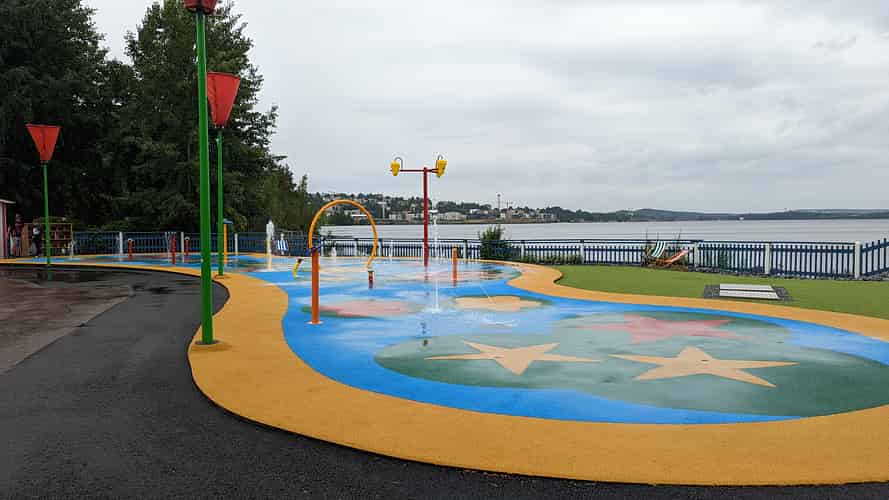 A splash pad with interactive fountains.