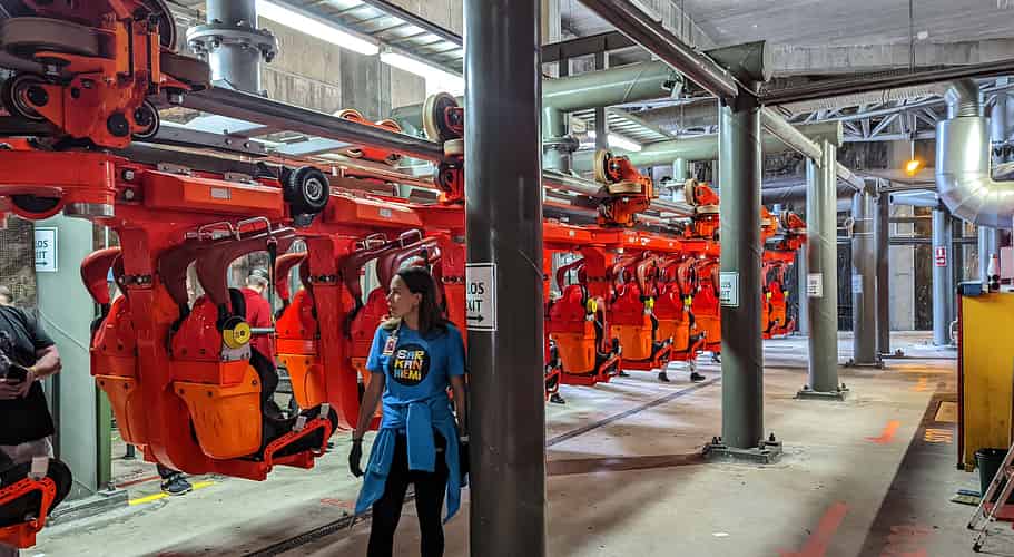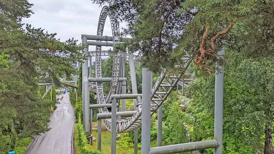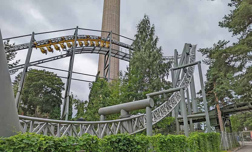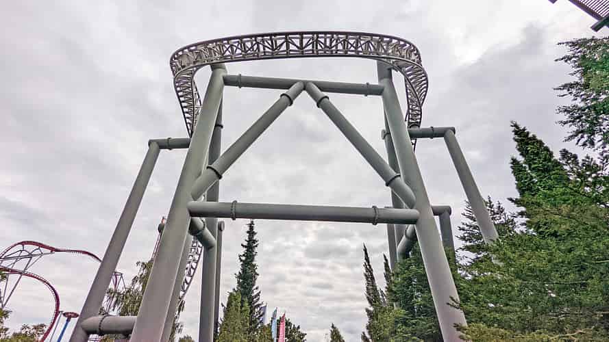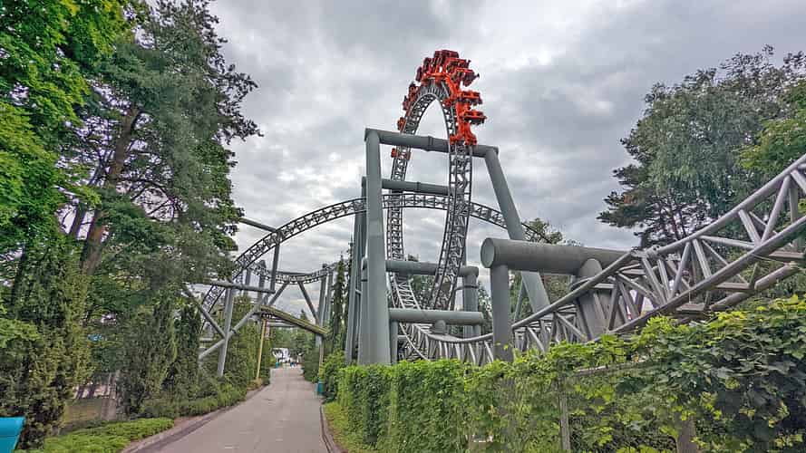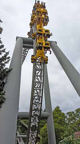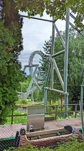 Tornado is a rare example of an Intamin suspended coaster.