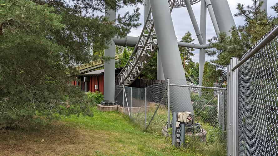 A turn from the station towards the lift hill.