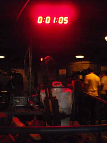 After passengers load in they are sent through an enclosed section, featuring a number of near misses with booby traps, as well as a surprise inversion. No photos of all this of course, but soon after emerging from the warehouse you are sent up a vertical lift.