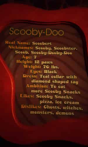 Scooby-Doo character bios are on the wall.