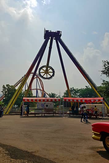 The ride type is otherwise popularly known as a Gyro Swing or Frisbee, and features a rotating ring of seats suspended from a pendulum.