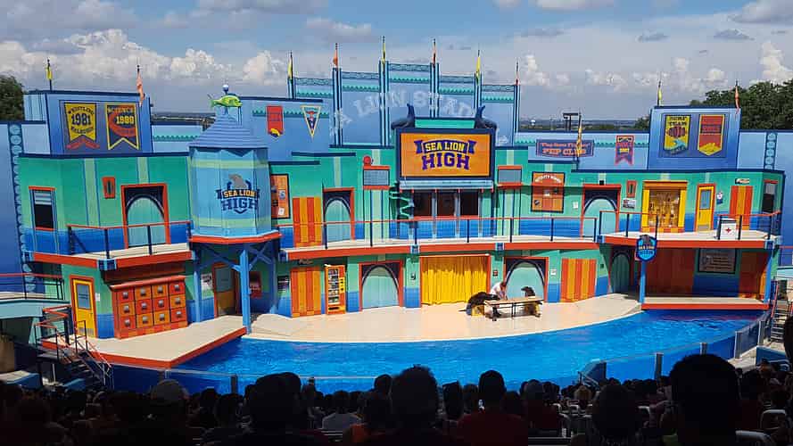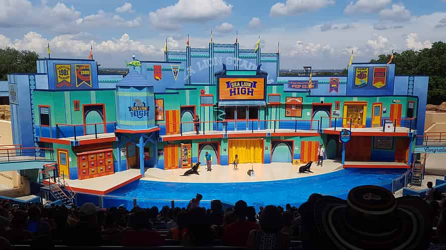 Sea Lion Stadium also hosts "Sea Lion High", a slapstick show featuring Clyde and Seamore completing their classes to "graduate" from the school.