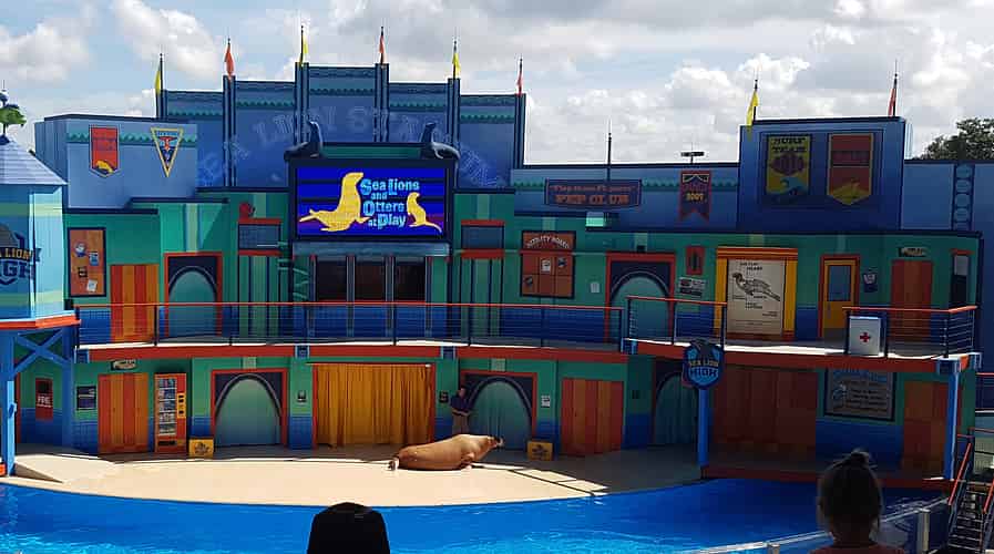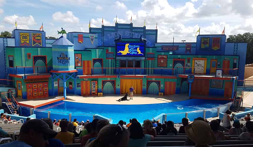 One of the shows at Sea Lion Stadium is "Sea Lions and Otters at Play", an educational presentation about the animals and their training methods.