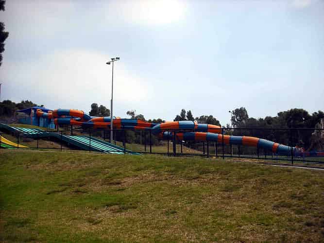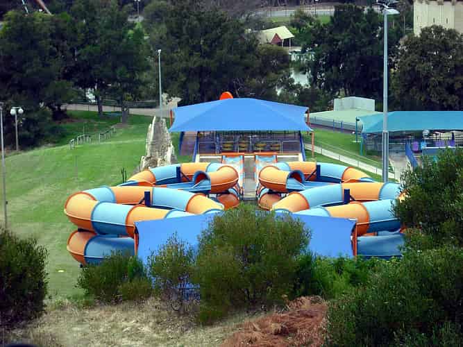 The water park area is a major draw of the park, given Perth's climate. It's a living time capsule of sorts from front to back, with the Wahoo Speed slides from 1985, the Tidal Wave racing slide from 2005, and Sea Serpents from 2006, and finally 2015's Kraken.