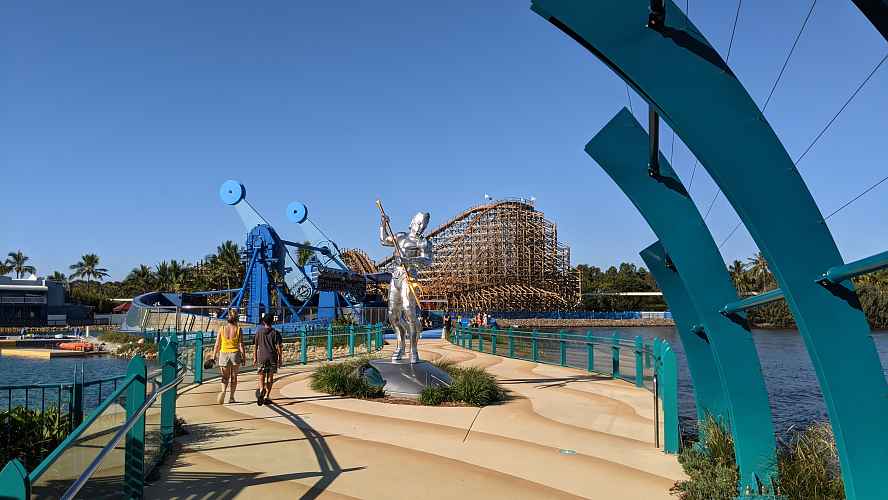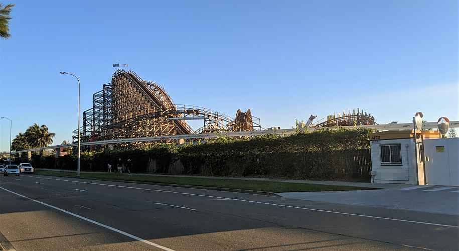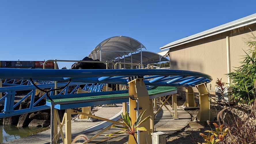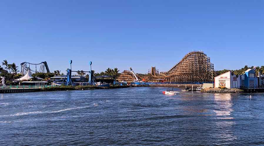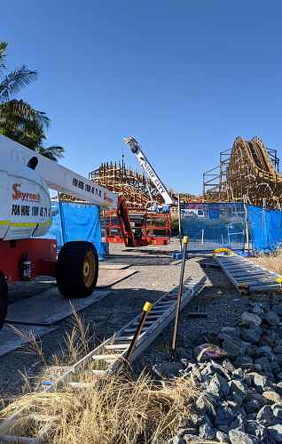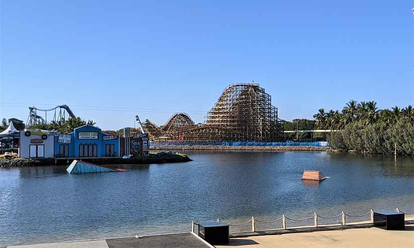 From the Nickelodeon Land, we can see just how nice the timber of the ride looks against the surrounding vegetation. Relatively few wooden coasters exist in subtropical climates, so there is a real opportunity here for Sea World to really continue the landscape and create one of the best looking wooden coasters out there.