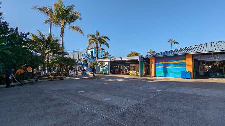 The walkway towards Shark Encounter and Riptide Rescue.