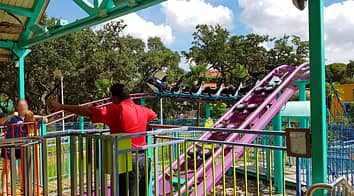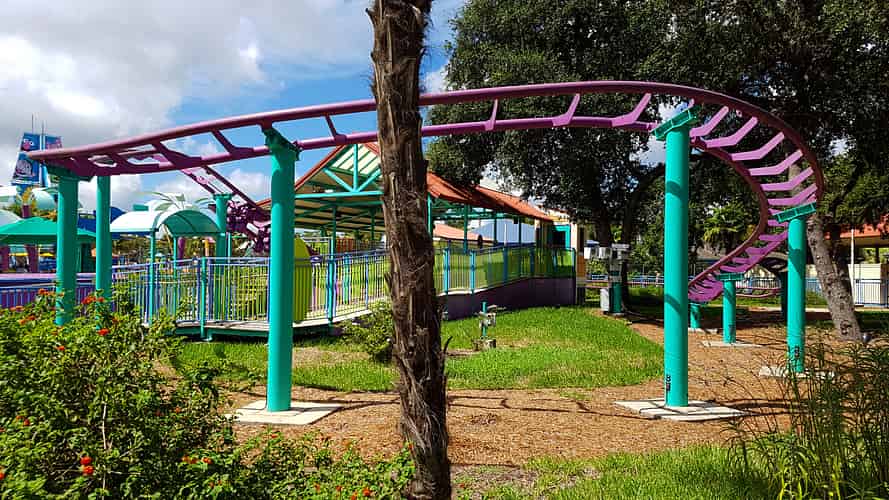 Shamu Express is a killer whale themed kiddie coaster.