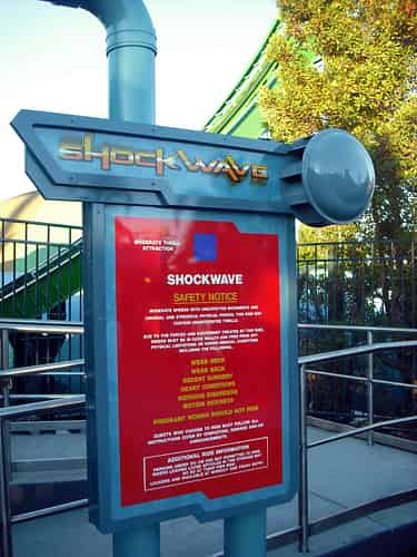 Seatbelts have been added Shockwave, something not seen on other identical rides anywhere else in the world.