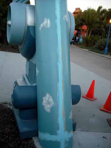 Perhaps a bit of a bugbear with the main signage...Notice those patches...You might think they just haven't patched up some plaster joins and seams, or it might be a bit of concrete splatter from the tradesmen when building the ride.