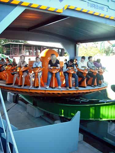 This version differs from the others in that it is a so called Disk'o Coaster, which features a camel hump at the midpoint of the ride.