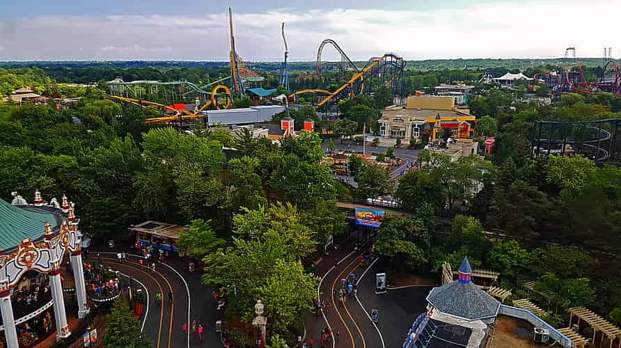 The eastern side of the park including Batman The Ride, Vertical Velocity, Yankee Clipper, Logger's Run, Goliath and Little Dipper.