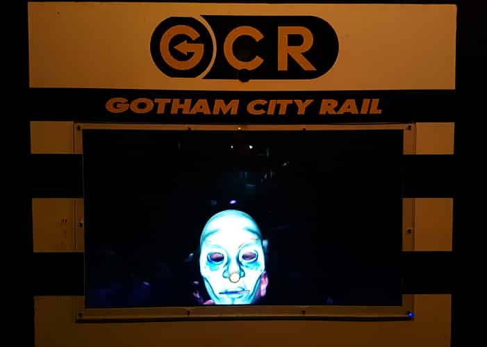Joker seems to have hacked into the security systems too, with this face tracking screen.