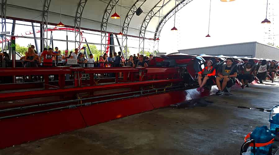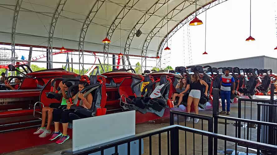 Rubber vest restraints hold guests securely during the drawn out inversions.