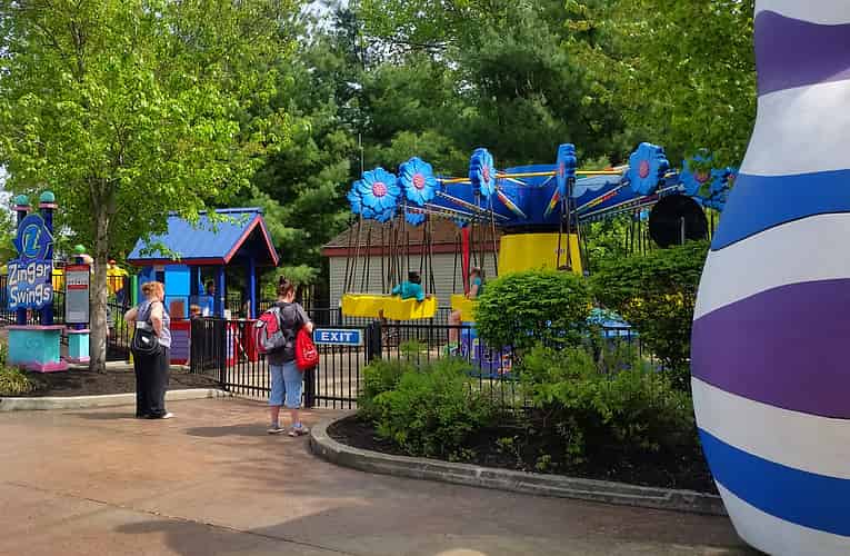 Whirlybirdz features helicopters suspended from a frame. The frame rises up the tower, whilst rotating.