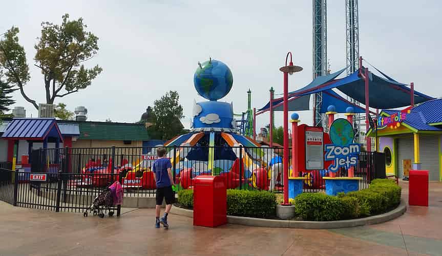ZoomJets is a larger scale version of your typical "Red Baron" kiddy airplane ride.