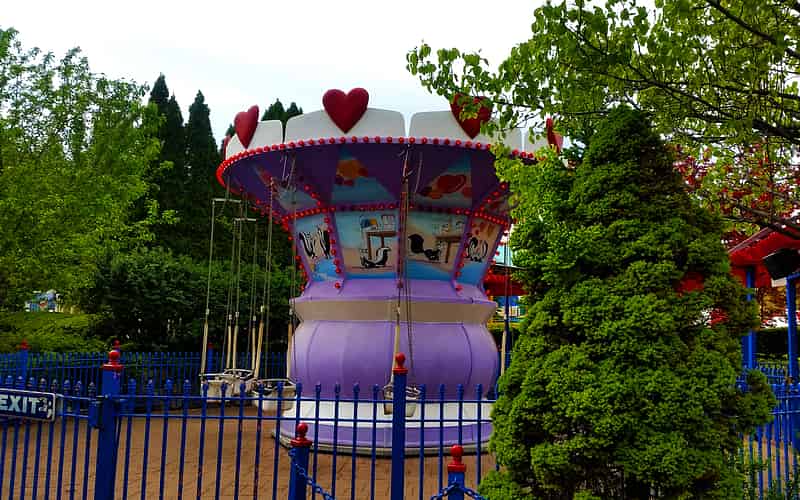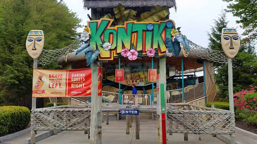 Tucked away on the path towards Hurricane Harbour is Kontiki, an Avalanche/Himalaya type ride. The tropical theming is somewhat of a contrast to the Alpine/European theming these rides tend to come with as standard.