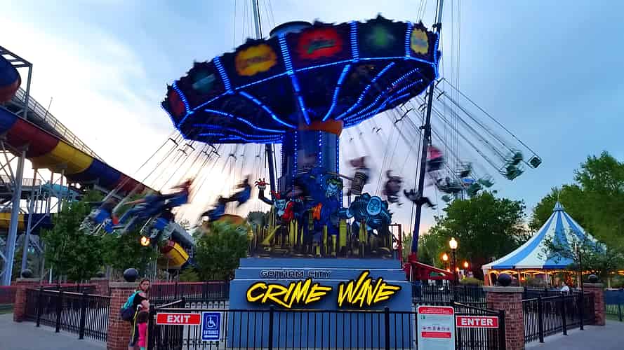 This type of kids drop tower can be seen at most Six Flags and Warner Bros. theme parks.