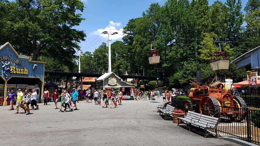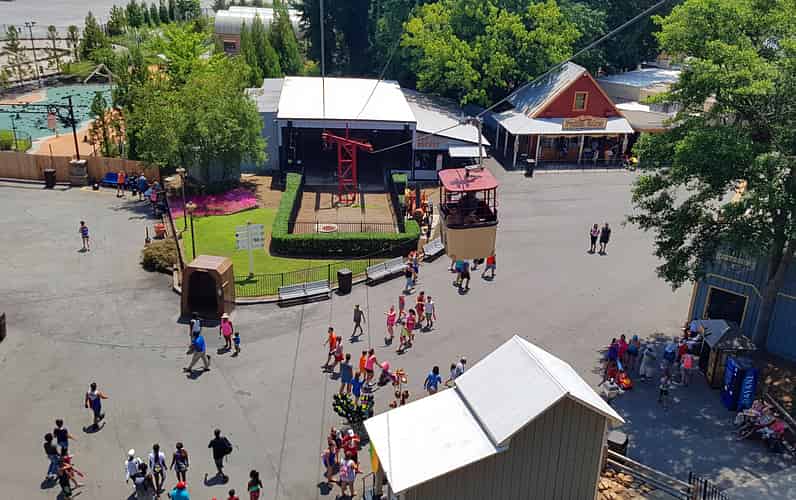 The Sky Buckets run from the front of the park, to Lickskillet Square in the back o the park.