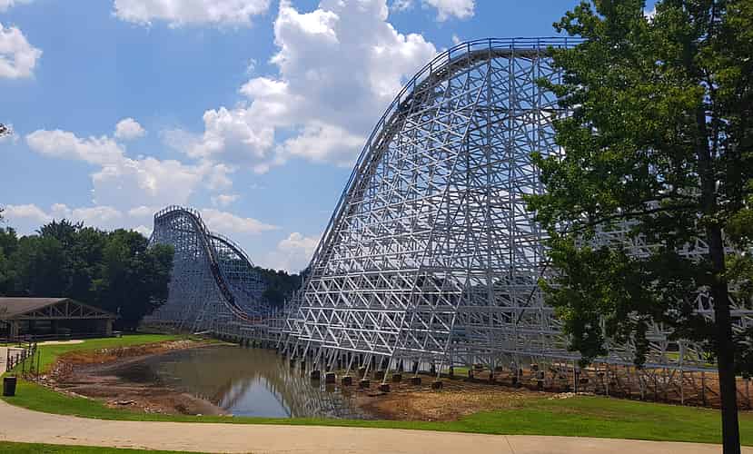 Goliath is a B&M hyper coaster, featuring multiple large hills.