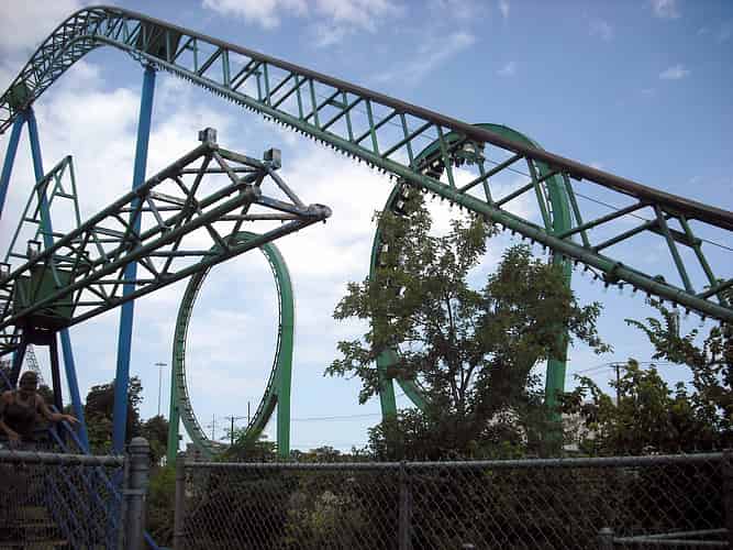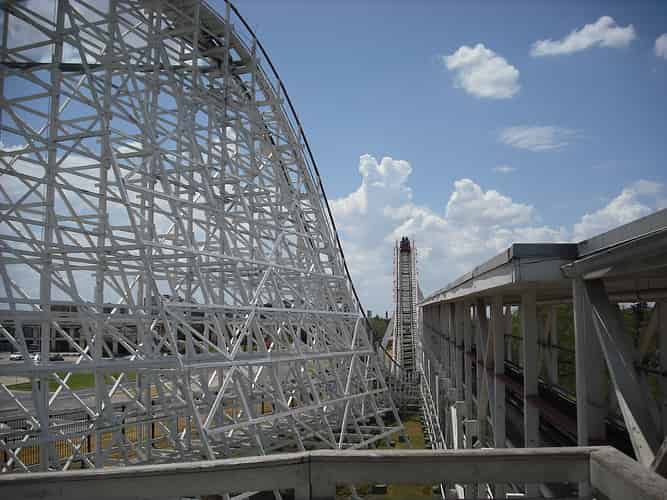 The first drop and final brakes. The ride follows a simple out and back layout.