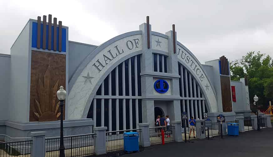 Justice League: Battle for Metropolis combines motion based vehicles with 3D screens and real sets, plus laser guns allowing riders to shoot at on screen targets.