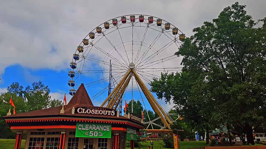 Colossus is centrally located in the 1904 Worlds Fair area of the park, making for good aerial photography of most rides.
