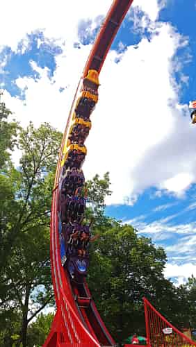 Fireball is a Superloop ride built by Larson. A train is propelled around a circular track, looping over and over.