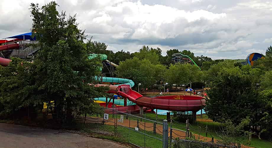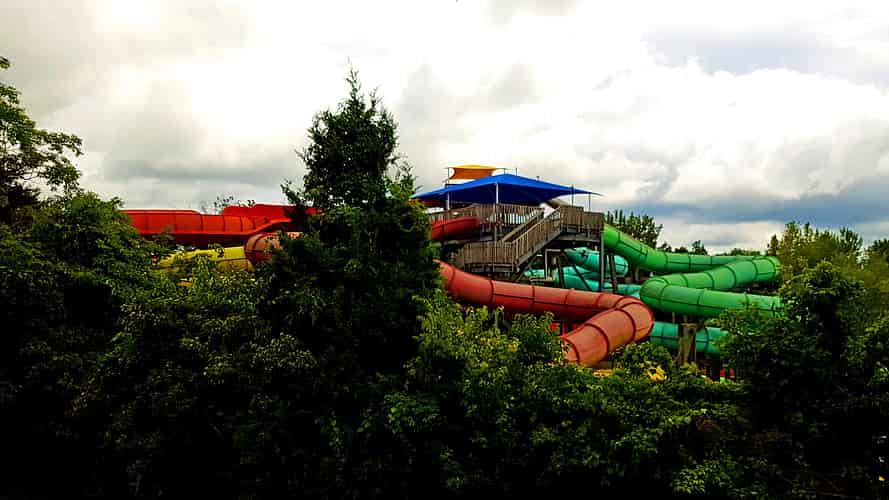 The Speed Slide tower can be seen in the distance behind the Tube Slides.