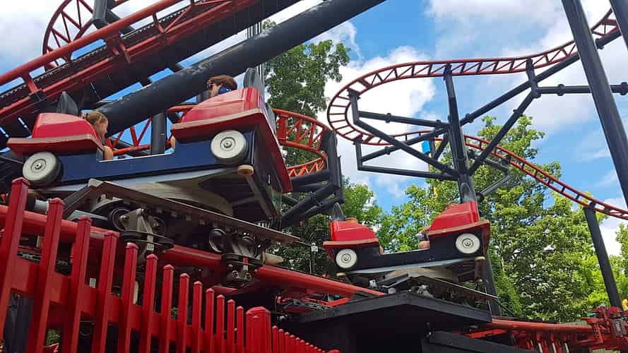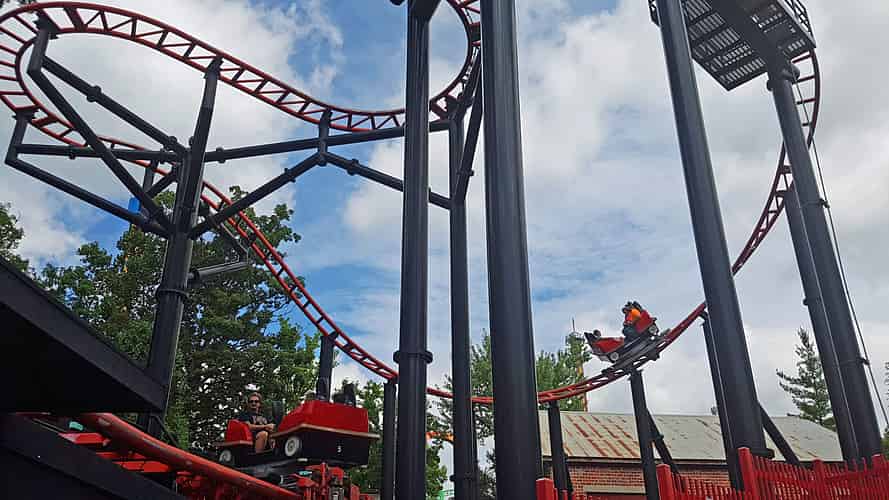 Boomerang travels forwards and backwards along its short track. The train passes through each inversion twice, meaning riders are turned upside down 6 times in a short period.