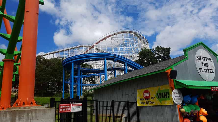 One end of the ride has a large wavy turn on a skateboard ramp style structure.