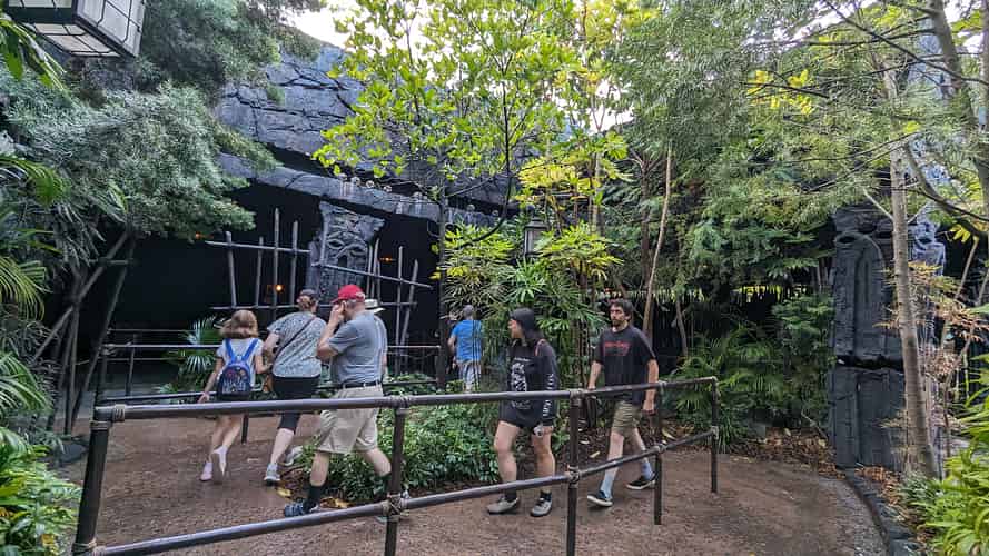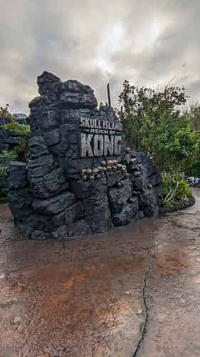 Skull Island: Reign of Kong is a multi media dark ride, with vehicles travelling through "immersive tunnels", with 3D projections either side of the ride vehicle.